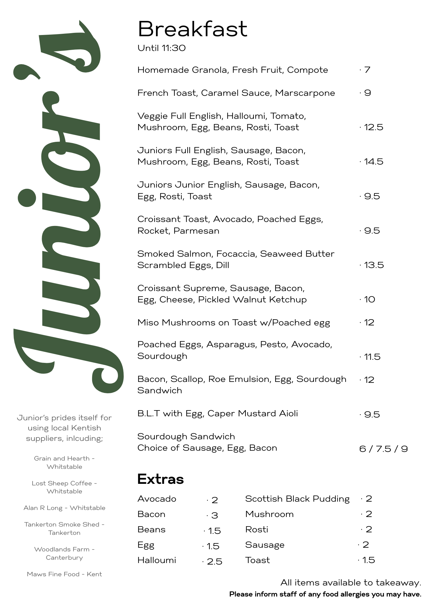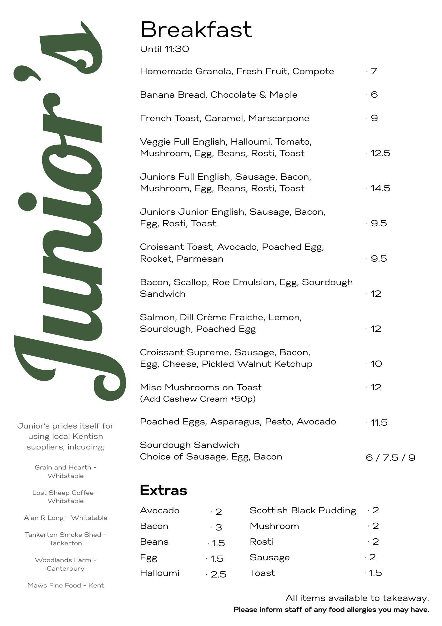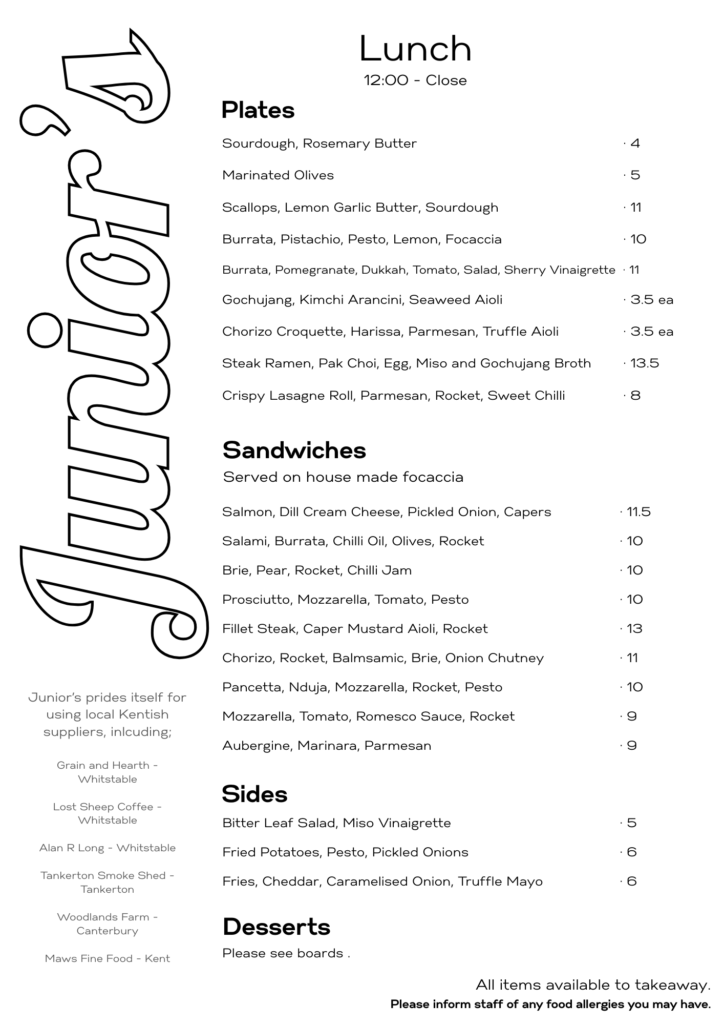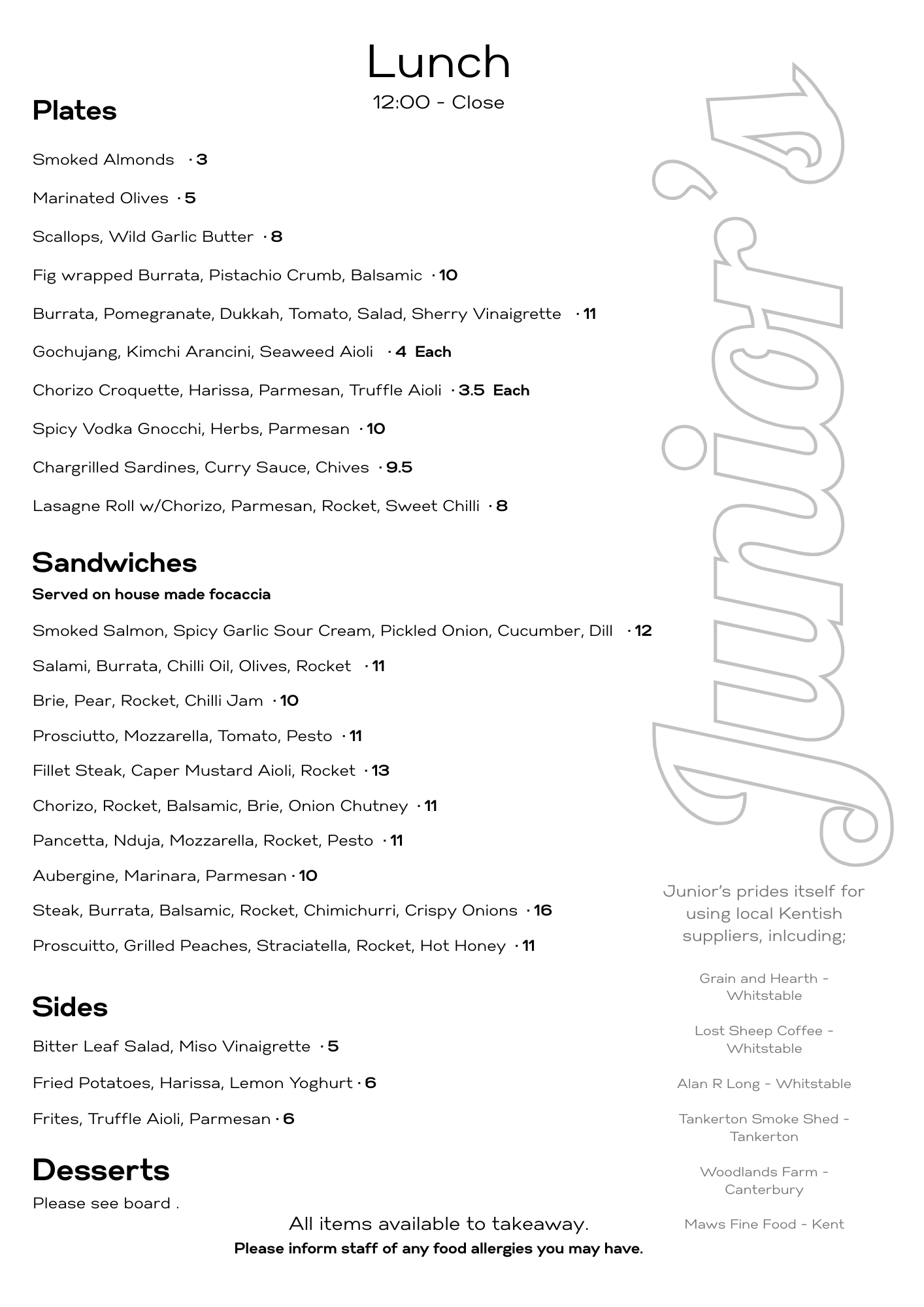 At Junior’s, we’re passionate about keeping things close to home. We proudly partner with local Kentish suppliers who care about quality and craft as much as we do. Every single one of our suppliers is based in Kent and we are proud to support our local community by keeping things this way.
